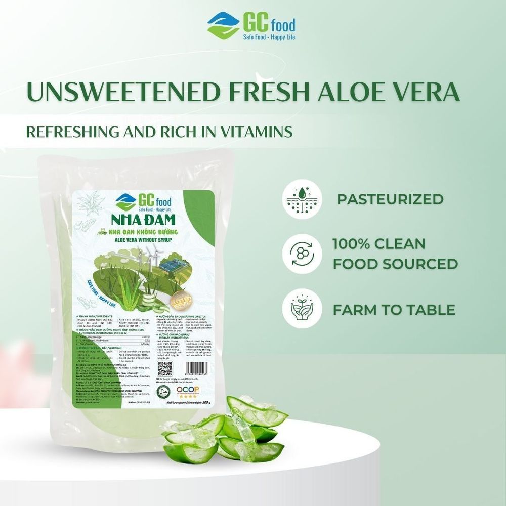 Thành phần: nha đam (60%), nước, chất điều chỉnh độ Acid (330), chất ổn định.