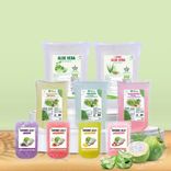 Nha đam, thạch dừa nước đường, có thể kết hợp với nhiều hương vị trái cây như vải, xoài, dâu, chanh dây...